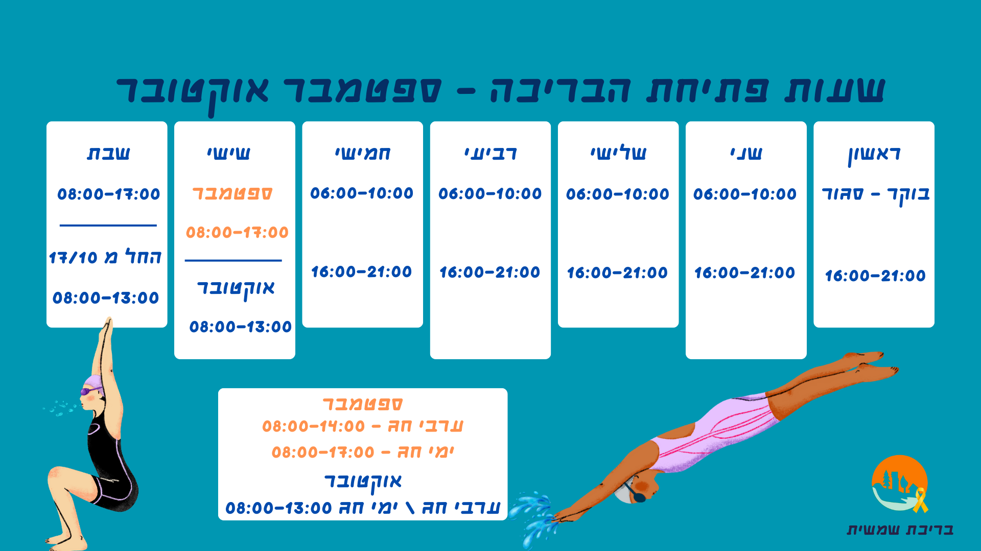 לשעות פתיחת הבריכה בחודש ספטמבר/אוקטובר לחצו כאן